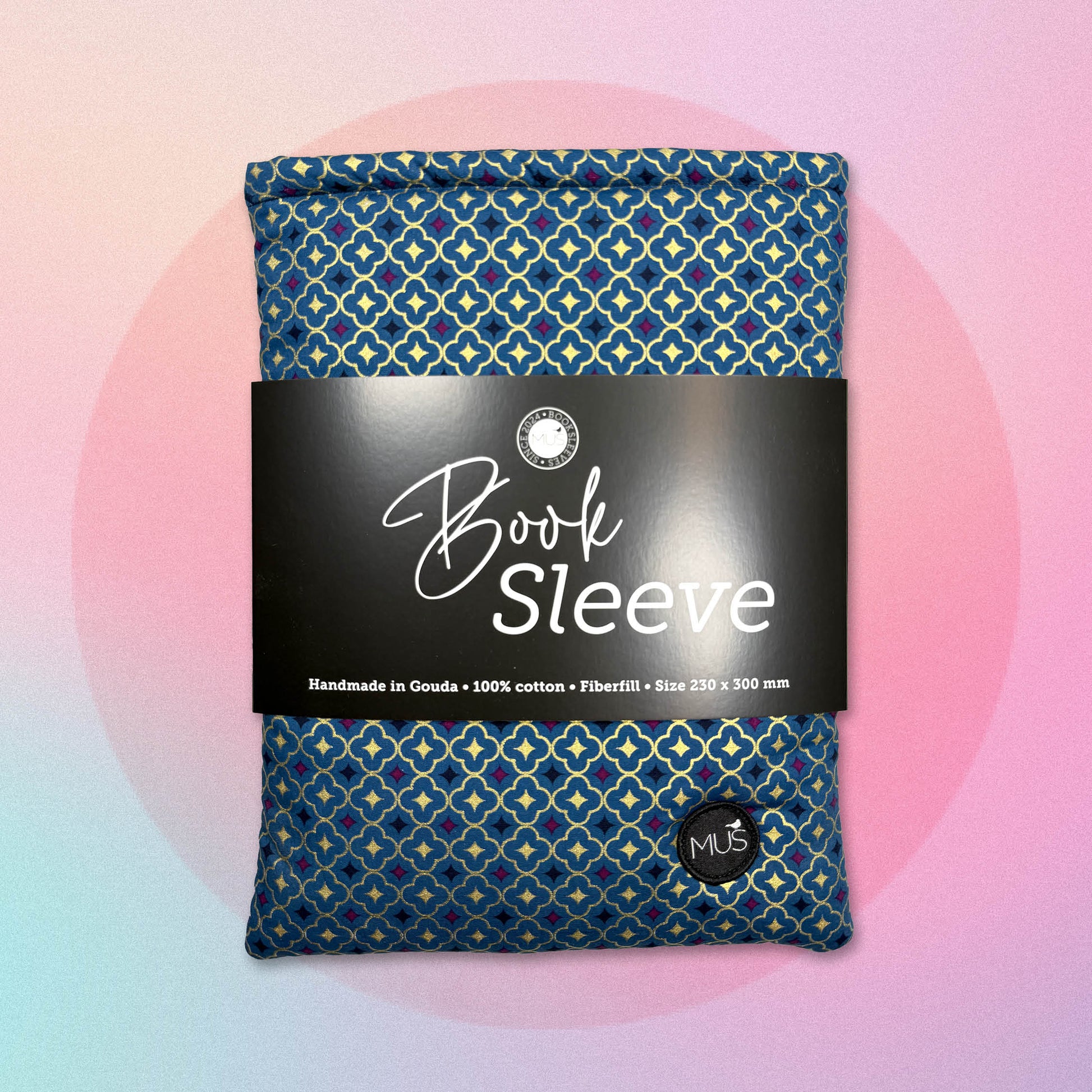 MUS Book Sleeve | Glas-in-loodpatroon in goudfolie op petrol achtergrond